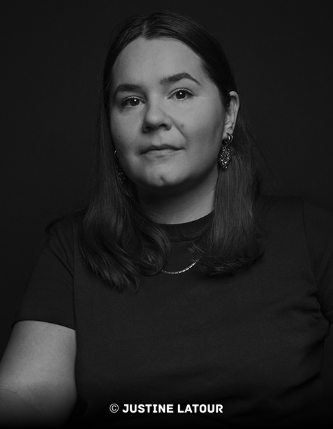 Inscrite dans une perspective historique, tout en faisant écho à la présence accrue, ces dernières années, de grands mammifères marins s’aventurant toujours plus loin dans les voies navigables – des environs de Québec jusqu’à Montréal –, l’intervention de Sabourin oscille entre passé et présent. Whale Fall déploie une coquille monumentale en papier mâché installée à la Maison de la littérature, sur la rive du puissant fleuve Saint-Laurent, faisant face à la capitale. Inspirée par la découverte d’un crâne de rorqual commun par l’artiste aux îles de la Madeleine en 2021, la sculpture joue avec l’échelle, la texture et l’imaginaire. La dispersion de Whale Fall de part et d’autre du fleuve, à l’image des traces d’un grand mammifère emportées par le courant, évoque les mémoires incarnées que l’on accumule en longeant les rives d’un cours d’eau, en y ramassant des bribes d’un environnement toujours fragmenté et renouvelé.