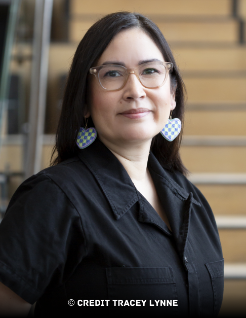 Pour Joi T. Arcand, l’utilisation de syllabiques participe à son cheminement personnel de réapprentissage de sa langue, encore bien vivante. Bien que placée sur un territoire non cri, l’installation évoque des enjeux qui dépassent les limites d’une seule nation. Les efforts d’enterrement des cultures autochtones ont été répétés à travers les siècles par les forces coloniales, au Canada et ailleurs. Si le combat pour la langue française est particulièrement féroce dans la province de Québec, on remarque toujours l’absence de langues autochtones dans l’espace public. Et pourtant, l’artiste rappelle ici que, malgré leur invisibilisation, celles-ci étaient présentes bien avant l’anglais et le français. Et elles le sont toujours. Dans sa forme évoquant la glace, l’œuvre témoigne de ce qui a été conservé à travers le froid.